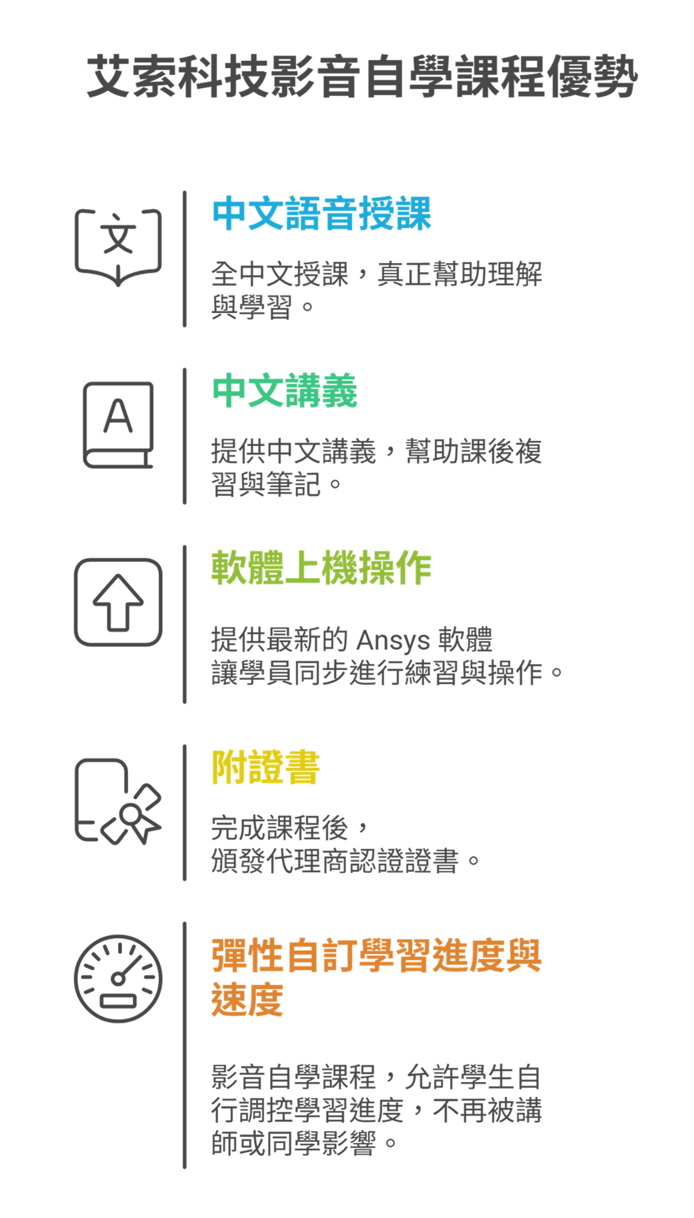 凡全程參與並完成本課程之學員,將由 Ansys 正式授權代理商 艾索科技 頒發「課程結業證書」乙張。