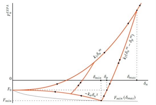 解決什麼問題:傳統 DEM 接觸模型僅考慮顆粒在接觸時產生的壓力,但某些情況下,顆粒分開時,可能因材料黏著性或表面作用力而產生拉力,例如膠狀、粉體附著等現象。