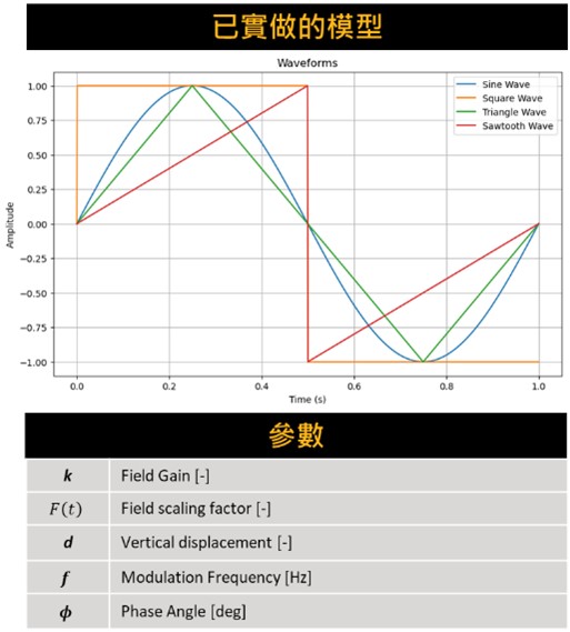 新功能與好處:支援多種場調變模型(Field Modulation),例如正弦、方波、三角波、鋸齒波等,配合靜態點雲使用,能夠模擬出動態行為。