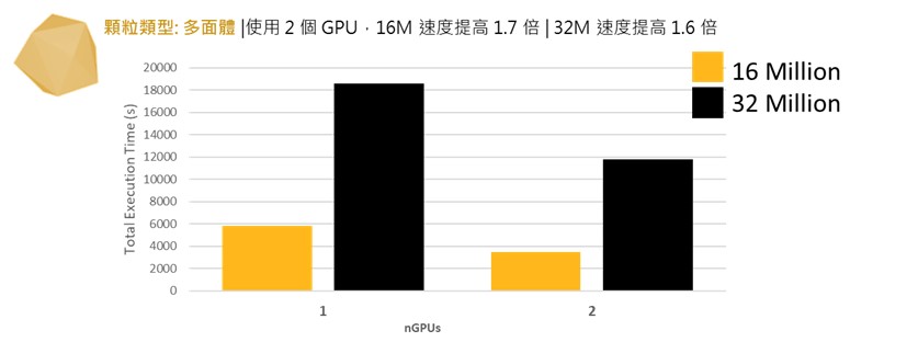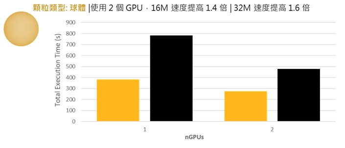 透過多顆 GPU 有效提升多達 3200 萬顆粒子的模擬效率,支援更大規模的模擬場景。