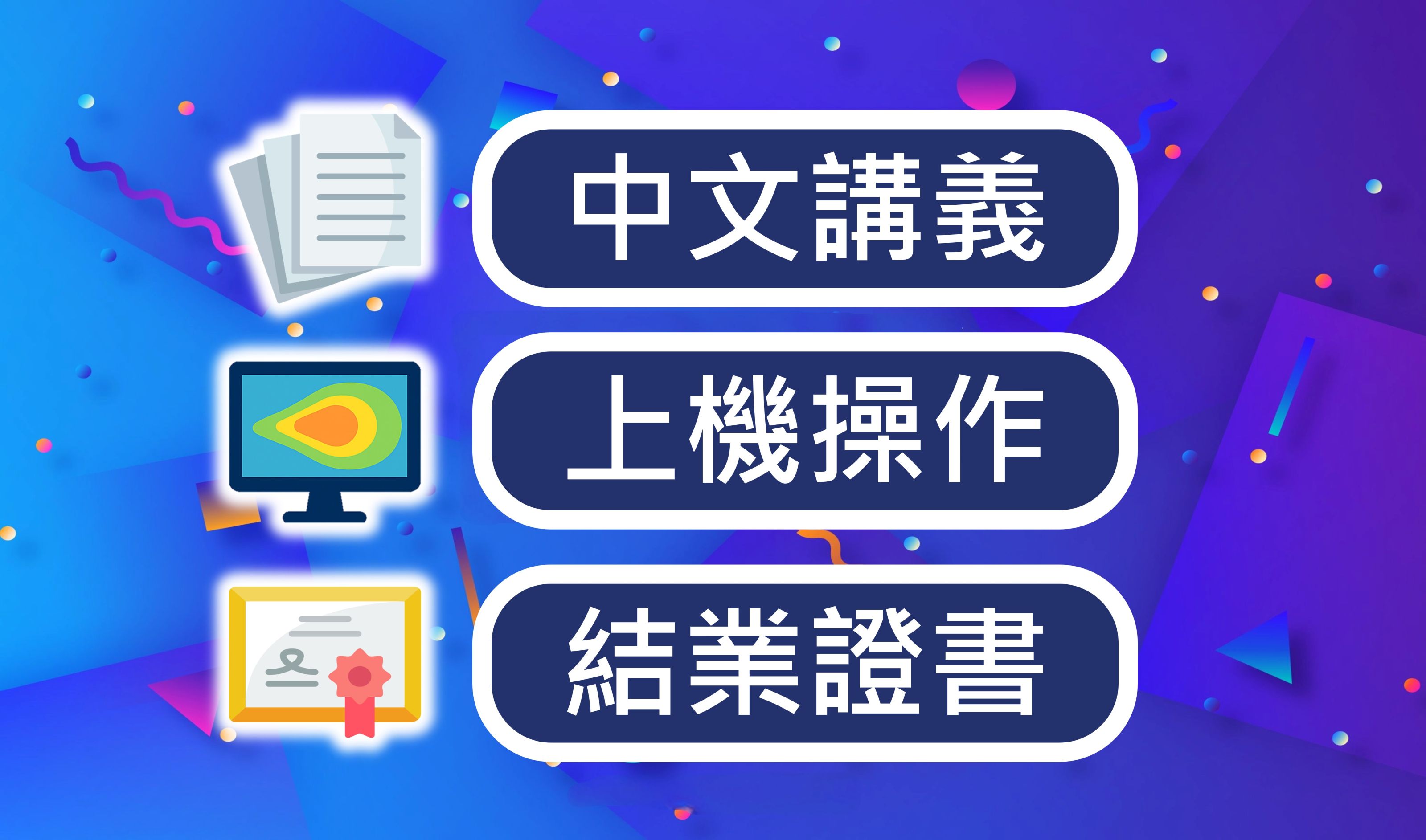 中文講義:課程全程採用中文講義與教學內容,讓您輕鬆理解課程內容,專心學習。